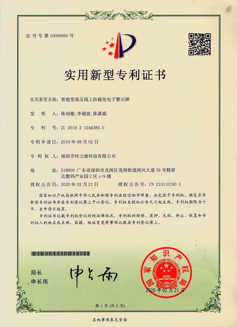 - 智能型高壓線上防碰掛電子警示牌