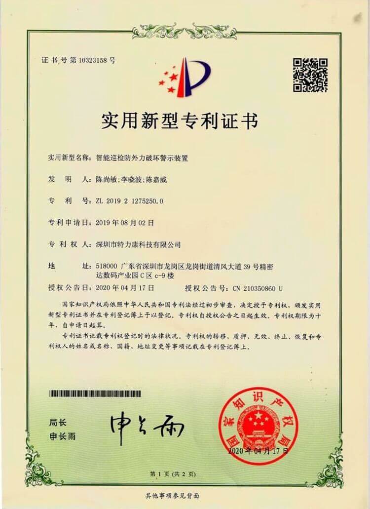 - 智能巡檢防外力破壞警示裝置認證
