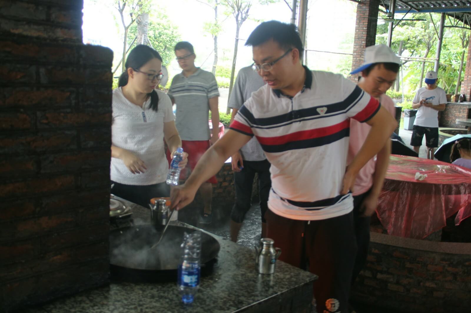 第三天,我們跟隨生物鐘醒來,相比前兩天,今天的活動時間相對寬裕,早上九點多起來吃過酒店特意留的早餐我們啟程去往郊區野炊,野炊自給自足,一切吃的都要自己動手在公司我們是職員現在我們是廚師大家都磨拳擦掌的行動起來,洗菜的、掌勺的、打下手的、添柴火的,不一會兒一盤色香味俱全的菜擺在桌上沒多久桌上已經是好幾道菜了有炒蛋、冬瓜湯、爆炒雞塊、南瓜片、炒青菜....,每道菜都富有不同的特色我拿起了手中的相機,將這一刻留在了鏡頭之中,大家相互顯無比親近,雖然只有這短短的三天。